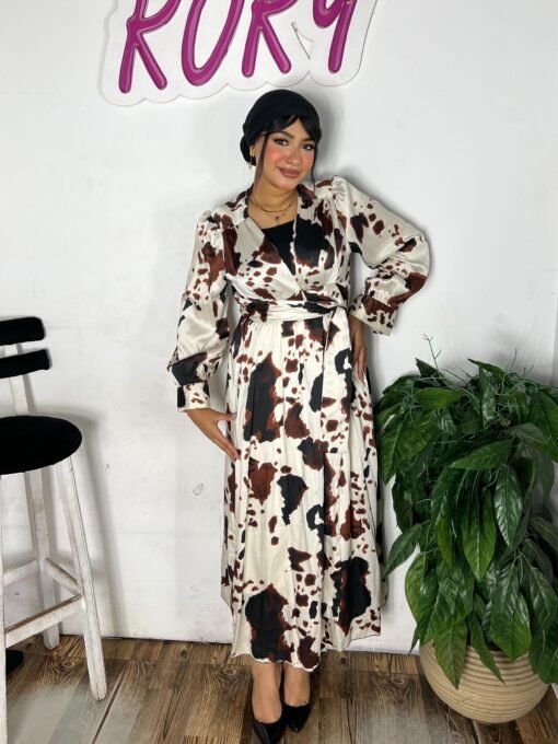 يتميز الفستان بتصميم مشجر متناغم، مع تفاصيل دقيقة تضيف لمسة من الفن والبراعة. الألوان الزاهية والقصات الاحترافية تجعله يبرز جمالية القوام الطبيعي بكل رُقي. يمكنك تنسيقه بسهولة مع أي نوع من الإكسسوارات المفضلة لديك للحصول على مظهر متكامل يناسب ذوقك الفريد.