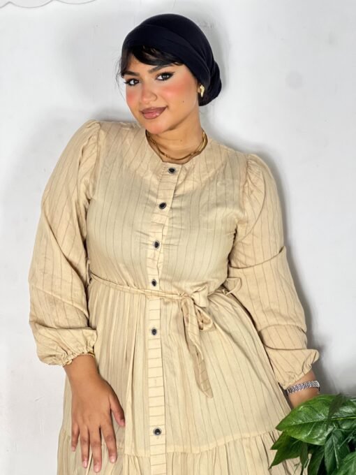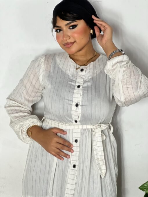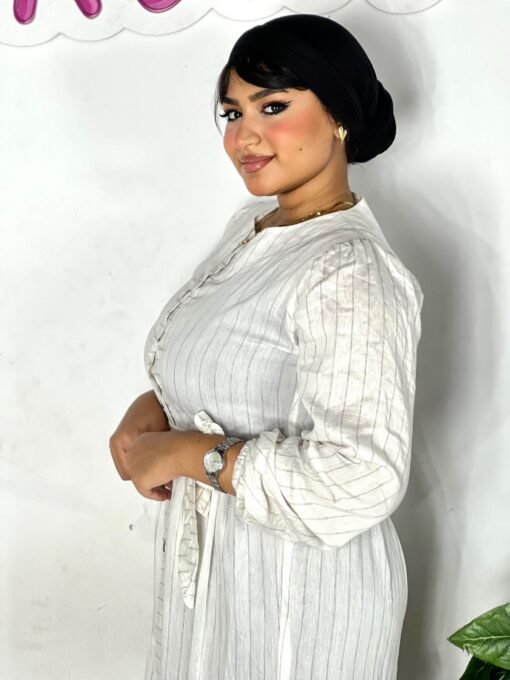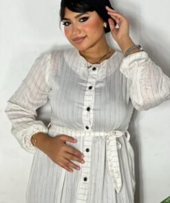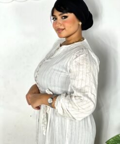 إذا كنتِ تبحثين عن قطعة تجمع بين الأناقة والبساطة، فإن فستان الكتان المقلم هو الخيار المثالي. يتميز هذا الفستان بتصميمه العصري والمريح الذي يناسب جميع الأوقات، سواء كانت مناسبة خاصة أو يوم عادي. يمنحكِ الكتان الخفيف والعالي الجودة راحة طوال اليوم بالإضافة إلى اللمسة الطبيعية التي تعكس شخصية جذابة وحيوية.