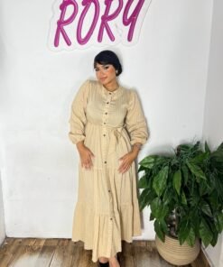 يمنحك هذا الفستان التجانس المثالي بين الراحة والأناقة، حيث يعمل خام الكتان على إبقاء الجسم منتعشًا حتى في الأيام الحارة. لا تفوتي فرصة إضافة هذا الفستان الرائع إلى مجموعة ملابسك، فهو يجمع بين العملية والتصميم المبتكر، مما يعزز من جمالك الطبيعي.
